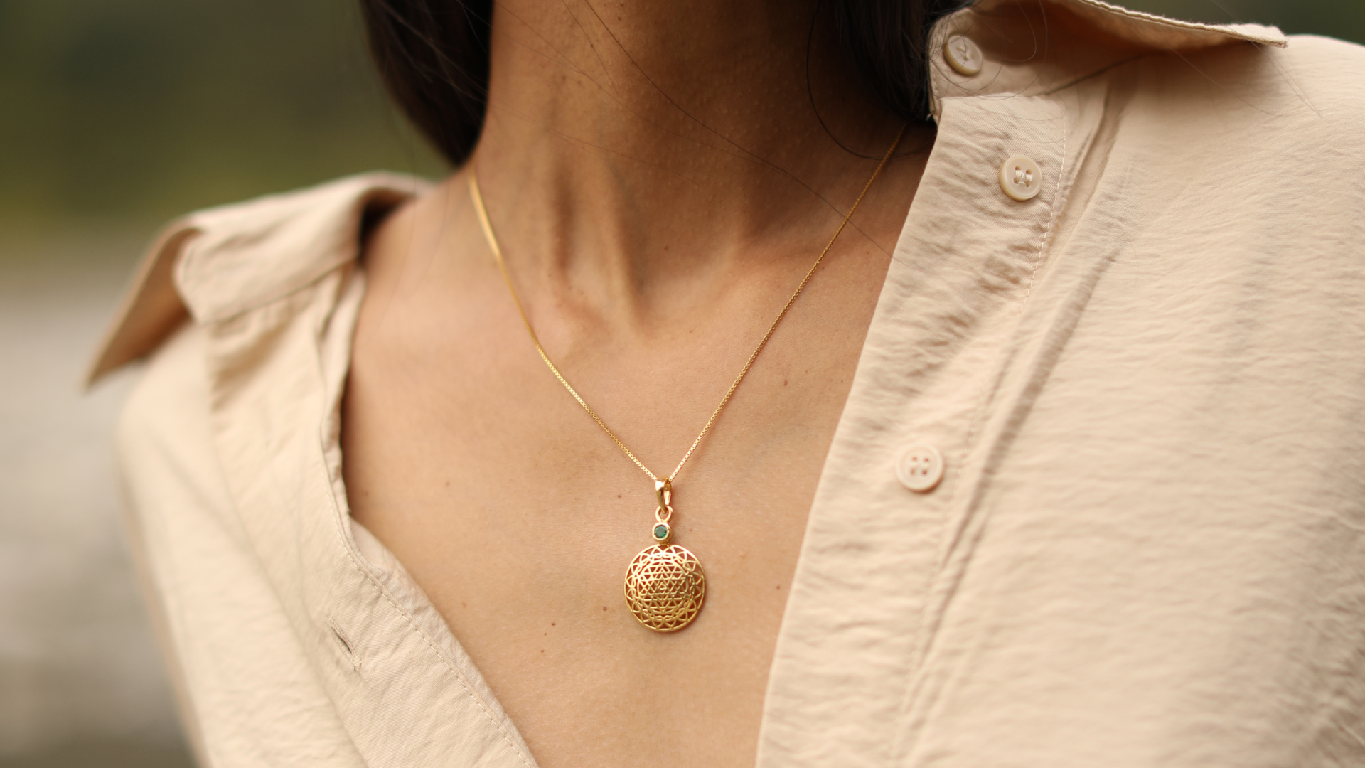 Saraswati Pendant Necklace 18kt Gold with Emerald Mount